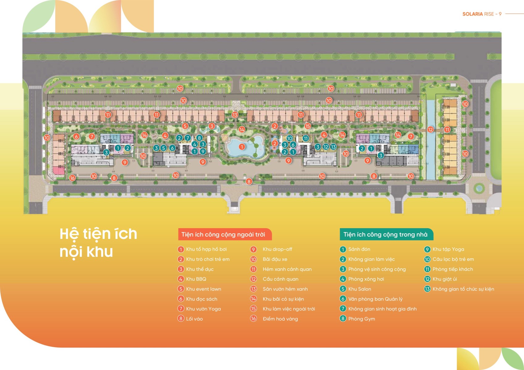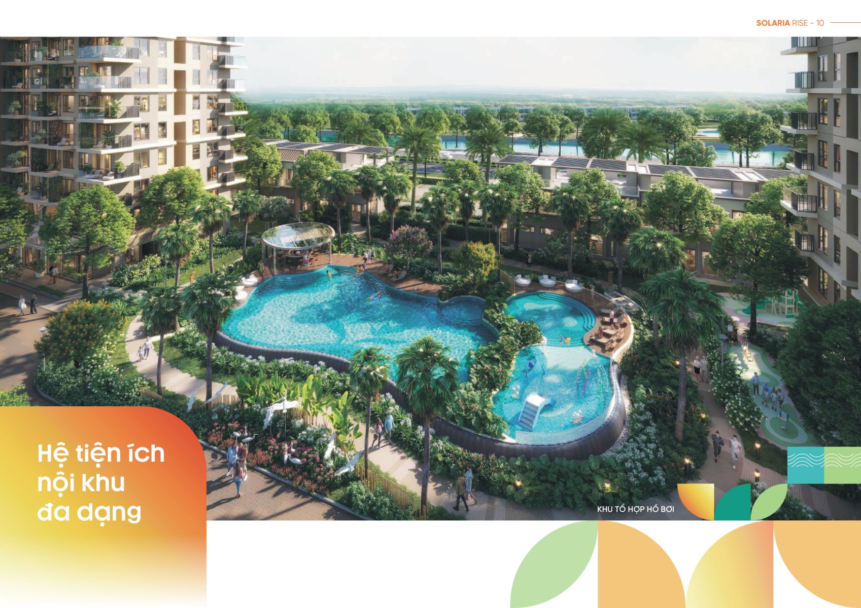 Solaria Rise không chỉ chú trọng đến không gian sống mà còn mang đến cho cư dân một hệ thống tiện ích đầy đủ, từ các tiện ích nội khu đến những tiện ích đẳng cấp toàn khu Waterpoint, phục vụ cho nhu cầu sống, giải trí và thư giãn của mọi cư dân:
