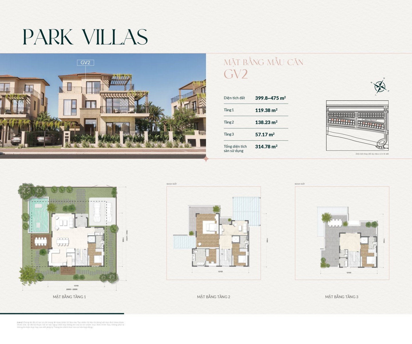 Biệt thự Đơn lập: diện tích từ 300–500 m², tách biệt, đẳng cấp, tận dụng tối đa ánh sáng tự nhiên và cảnh quan xung quanh.