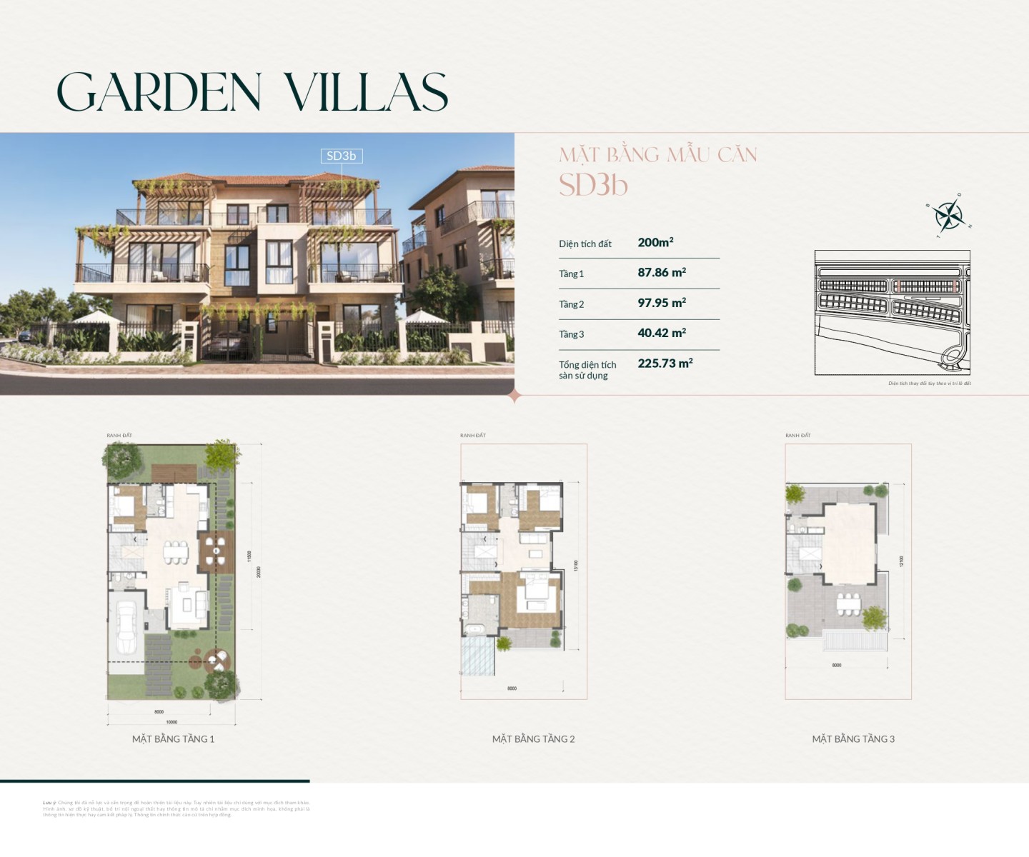 Biệt thự Song lập: diện tích từ 200–300 m², thiết kế hiện đại, tối ưu không gian sống xanh, sân vườn rộng, view sông.
