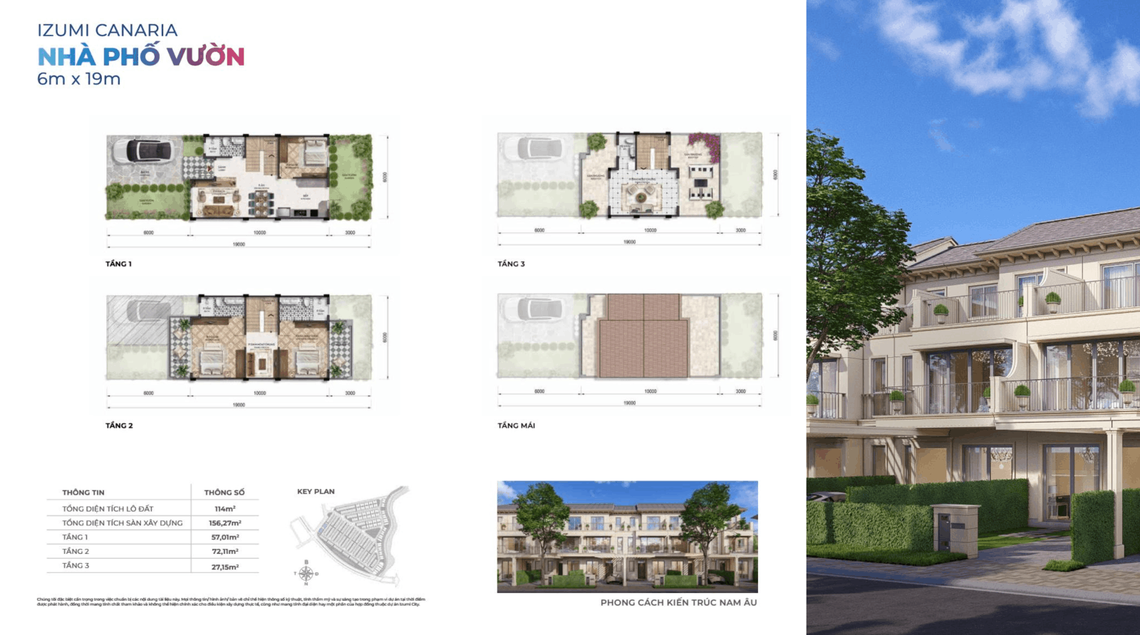 Nhà phố vườn 6m: 6x19 – 114m²: 03 tầng, Thiết kế hiện đại, sân trước – vườn sau, ánh sáng tự nhiên.