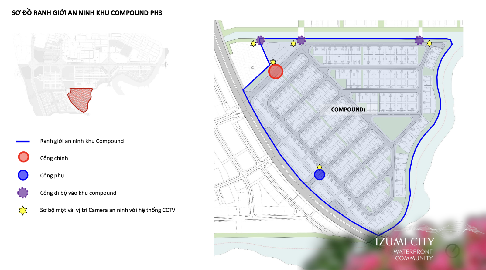 Quy hoạch: Phân khu khép kín (compound), hai mặt giáp sông và kênh đào